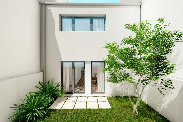 Live with Style: This is not just a building; it’s a lifestyle statement. With two floors and a mezzanine, every detail has been meticulously planned to offer the utmost comfort. The T1 apartment, with 50 m² of internal area plus 22 m² of garden, features individual entries that ensure privacy without compromising the sense of community.